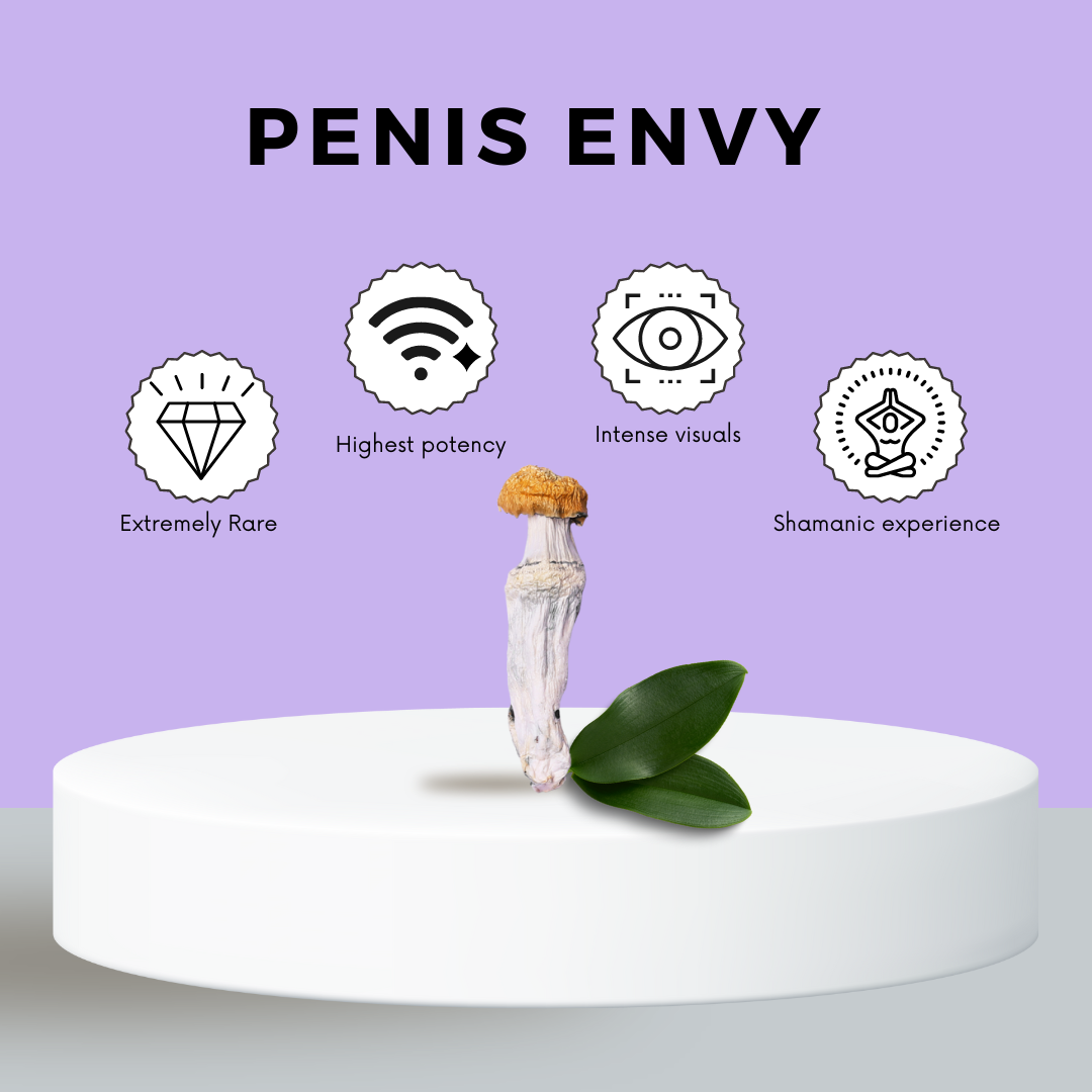 PENIS ENVY: Rare, sought after and renowned for being one of the most potent magic mushrooms Penis Envy is the king of shrooms. Perfect for vision quests, and intense mystical experiences.